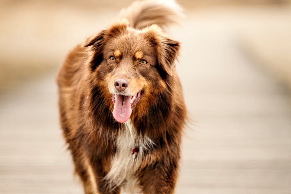 Unsere eigene australische Schäferhündin Nora sieht auf diesem Bild sehr zufrieden aus.