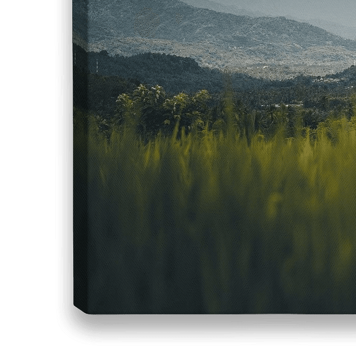 Dieses Foto zeigt eine bezaubernde tropische Landschaft auf Bali, Indonesien, mit majestätischen Palmen und ausgedehnten Reisfeldern. Das Bild verkörpert die natürliche Schönheit Balis und fängt die Essenz des lokalen Lebens ein. Die üppig grünen Palmen bilden einen schönen Kontrast zu den goldenen Reisfeldern und bieten einen atemberaubenden Anblick. Dies ist eine Hommage an die symbiotische Beziehung zwischen den Einheimischen und ihrer natürlichen Umgebung.
