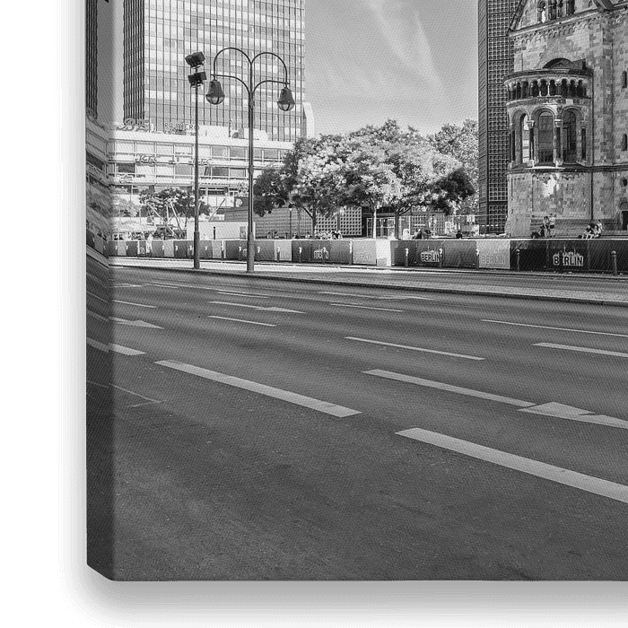 Blick auf die Kaiser-Wilhelm-Gedächtniskirche und dessen Umgebung von der Budapester Straße. Eine bekannte Berliner Stadtansicht aus dem Herzen der City-West.