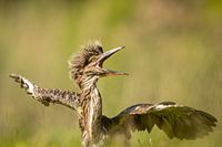 Eine jugendliche Wachtel sah etwas von oben kommen und erschreckte sich. Er wollte weglaufen wie eine Rakete