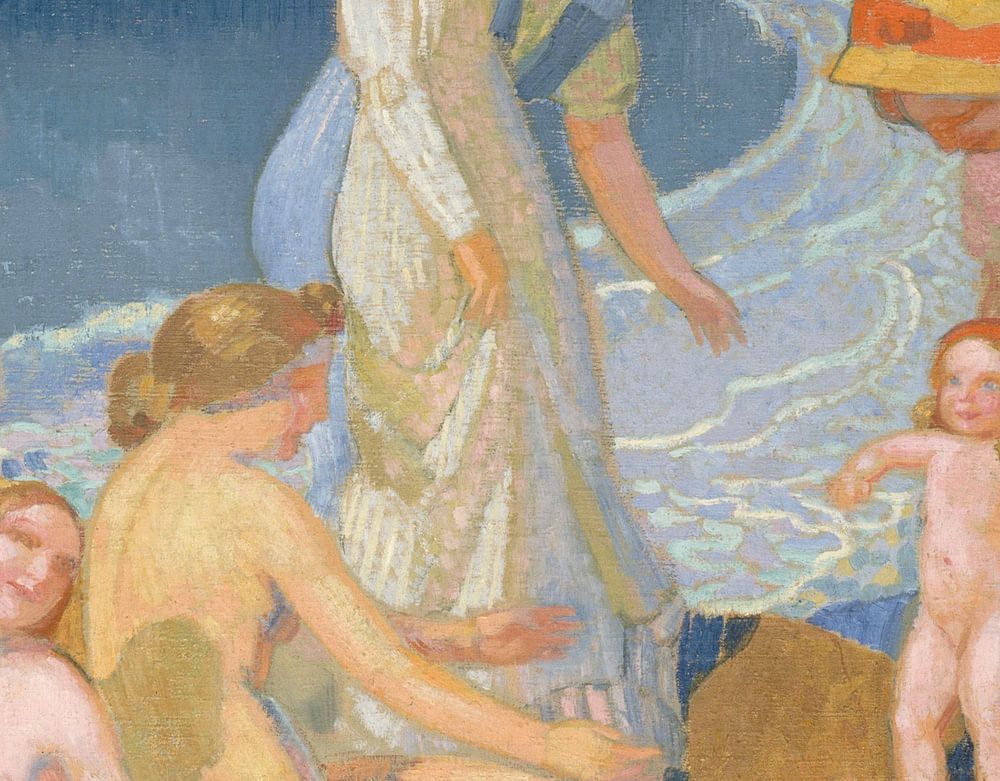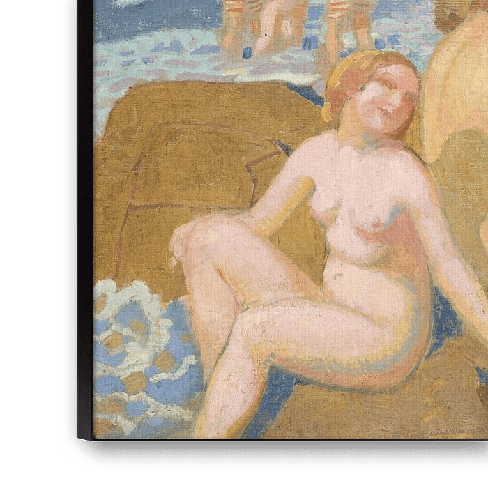 Badende in Perros-Guirec, Maurice Denis (1909) Maurice Denis war ein französischer Maler, Dekorateur und Schriftsteller, der in der Übergangszeit zwischen Impressionismus und moderner Kunst eine wichtige Rolle spielte. Er wurde mit Les Nabis, dann mit der symbolistischen Bewegung und schließlich mit der Rückkehr zum Neoklassizismus in Verbindung gebracht. Seine Theorien trugen zu den Grundlagen des Kubismus, des Fauvismus und der abstrakten Kunst bei. Nach dem Ersten Weltkrieg gründete er die Ateliers d'Art Sacré (Werkstätten für sakrale Kunst), dekorierte die Innenräume von Kirchen und setzte sich für eine Wiederbelebung der religiösen Kunst ein.