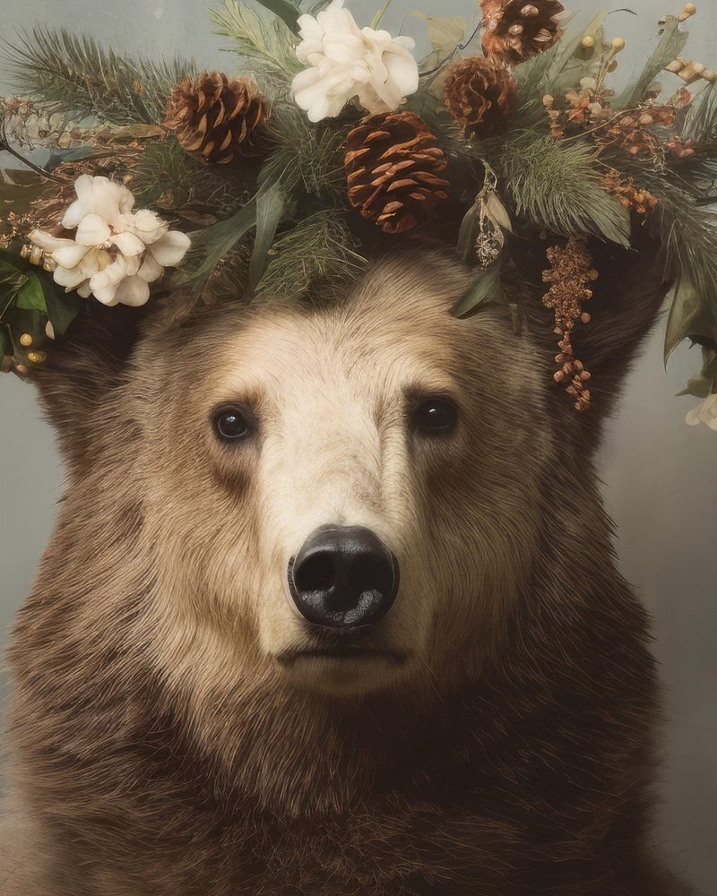 Bär im Winter mit botanischen Elementen. Wählen Sie die Größe und das Material für diese Winterarbeit selbst und gestalten Sie sie ganz nach Ihrem Geschmack.