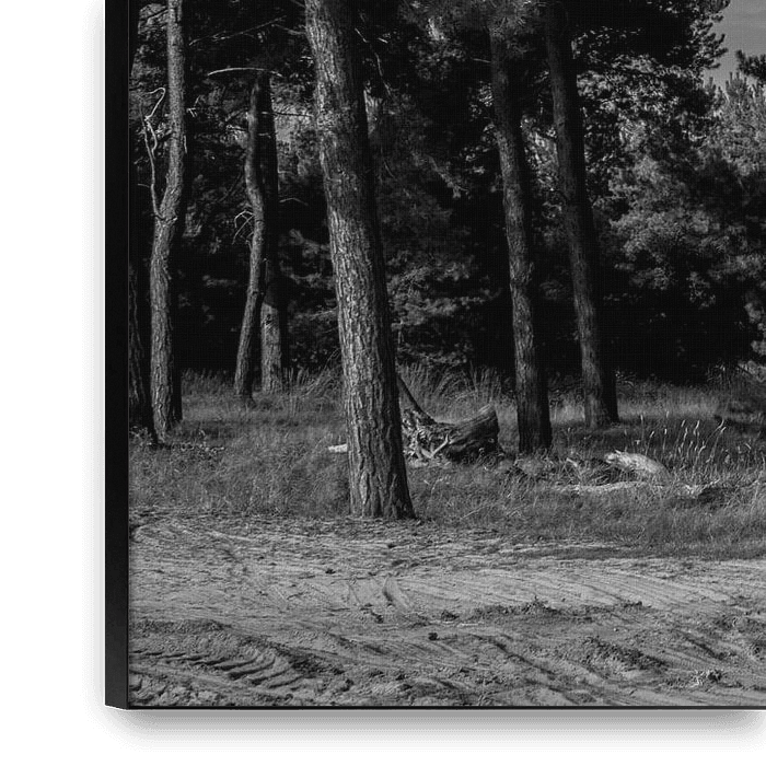 Bestelle das Foto Bäume, Sand und Frieden in Schwarz und Weiß von Jolanda de Jong-Jansen als Reproduktion auf Leinwand, Alu-Dibond, als Poster, Fototapete oder Acrylglasbild.