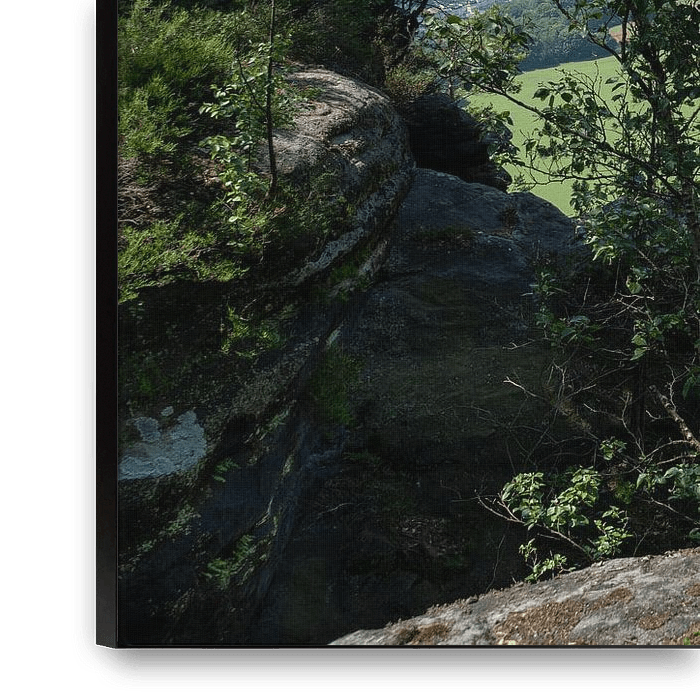 Dieses Landschaftsmotiv habe ich auf dem Gipfelplateau des Lilienstein, dem Wahrzeichen der Sächsischen Schweiz, aufgenommen. Es ist dem Ausblick in Richtung der Festung Königstein und in das Tal der Elbe gewidmet. Bäume und Felsen umrahmen die Naturszene. Der klare Himmel und das helle Sonnenlicht bringen die üppigen, sommerlichen…