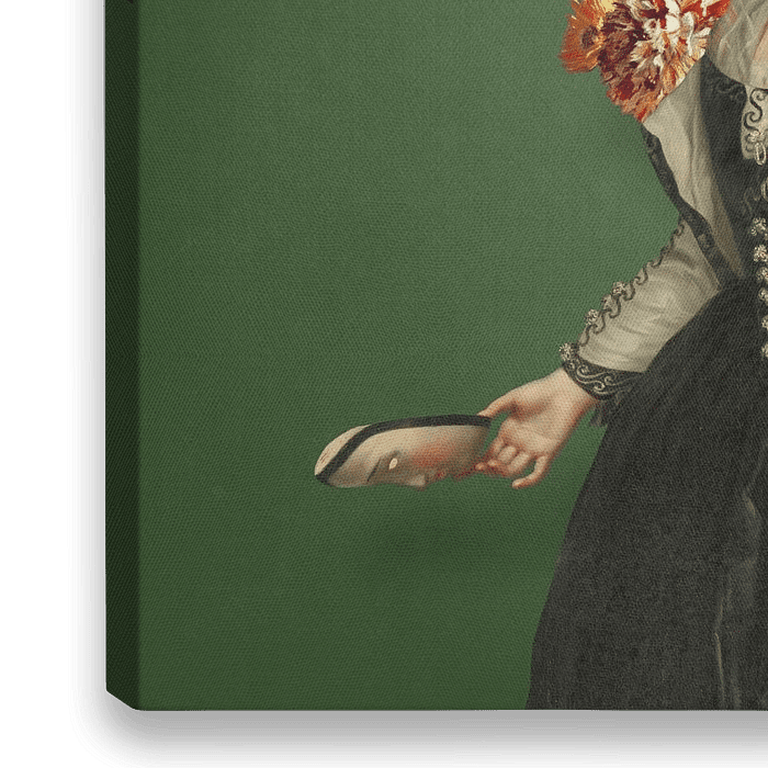 Surrealistisches Porträt einer adligen Dame, die ihr wahres Gesicht zeigt.