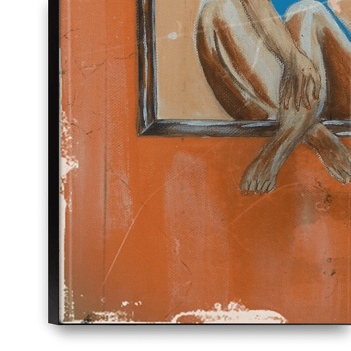 erotische Malerei, Frau, Posing, Retro, Vintage, Nostalgie, Orange, Blau, Fine Art, Pop Art, Menschen, Bildsprache,