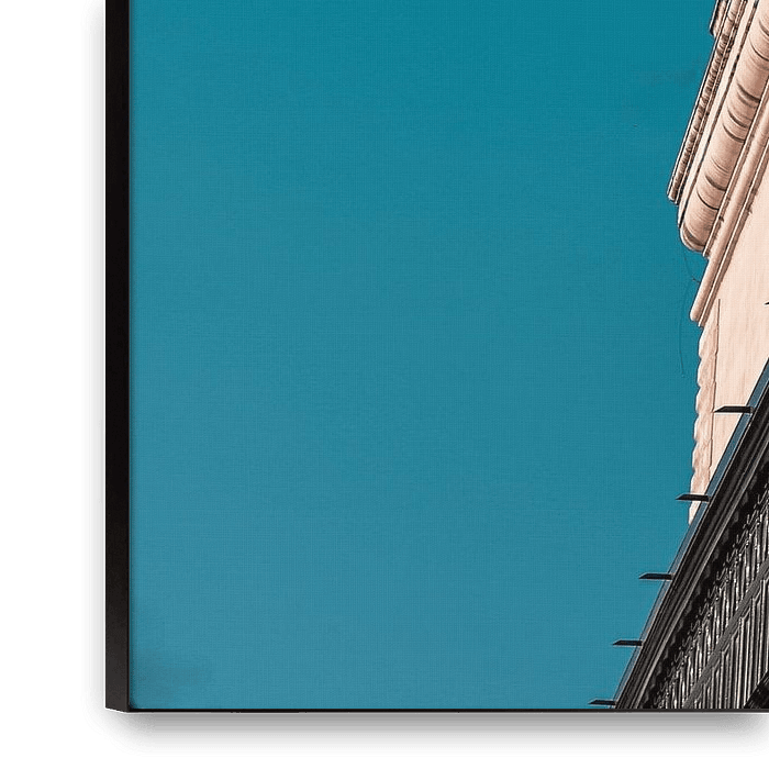 Ihre gewählte Kunst auf Leinwand, gespannt in einem Aluminiumrahmen. Schnell und einfach austauschbar für eine frische Ausstrahlung und ganz nach Ihren Wünschen.