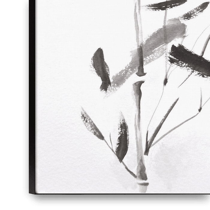 Aquarell mit Tusche von Bambus und einem Vogel, ein japanischer Stil in Schwarz und Weiß für jedes Interieur. Stilvoll und minimalistisch.