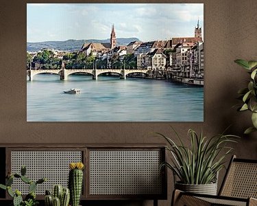 Die Rheinbrücke und das Basler Münster im Hintergrund. Sehenswürdigkeiten der Stadt Basel in der Schweiz