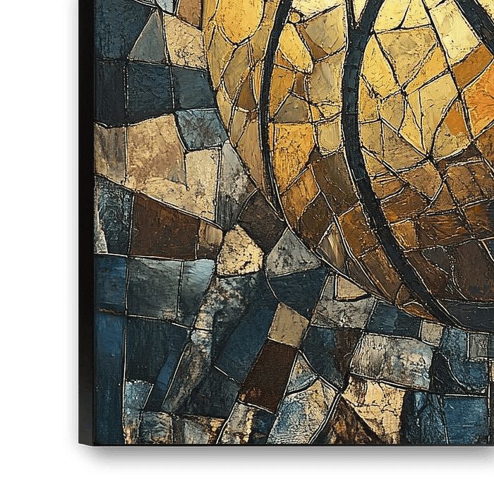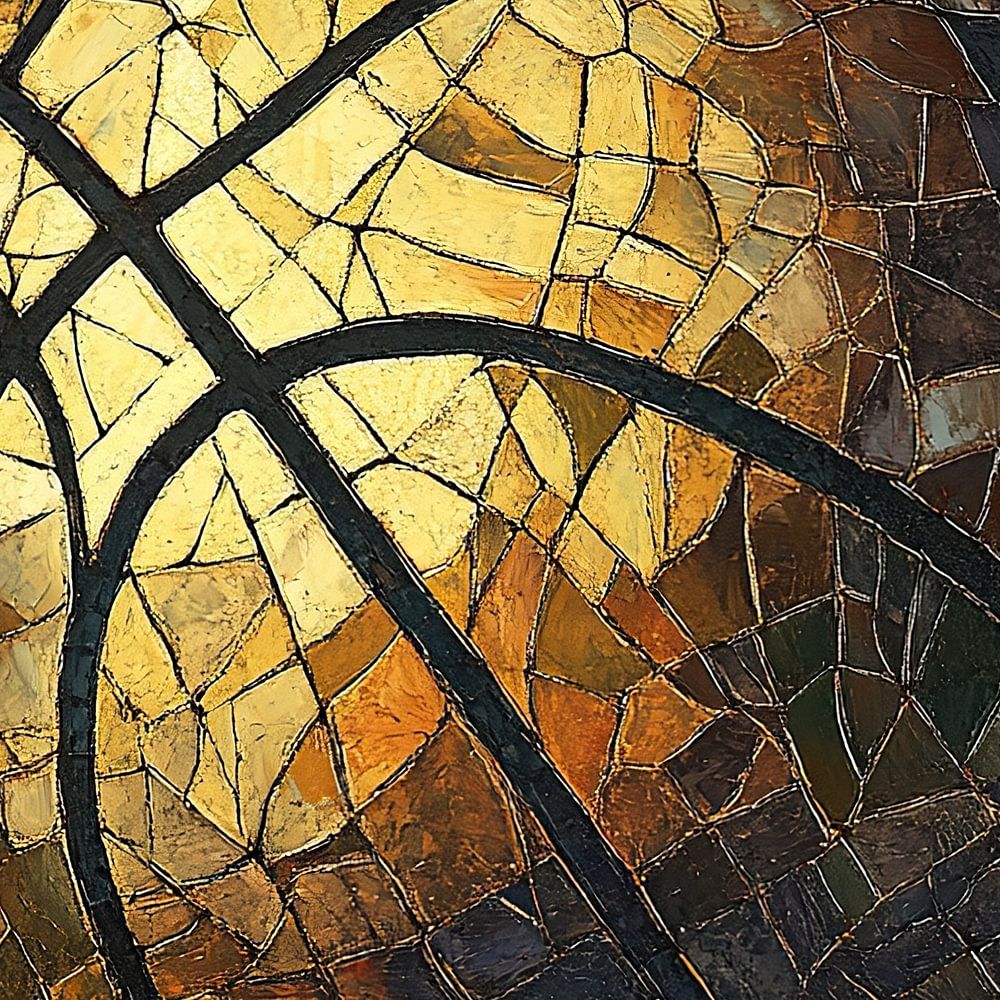 Details: Basketball, Gold, Blau, Braun, moderne Kunst, abstrakt, Kubismus, Sportmalerei, Energie, Kunstwerk