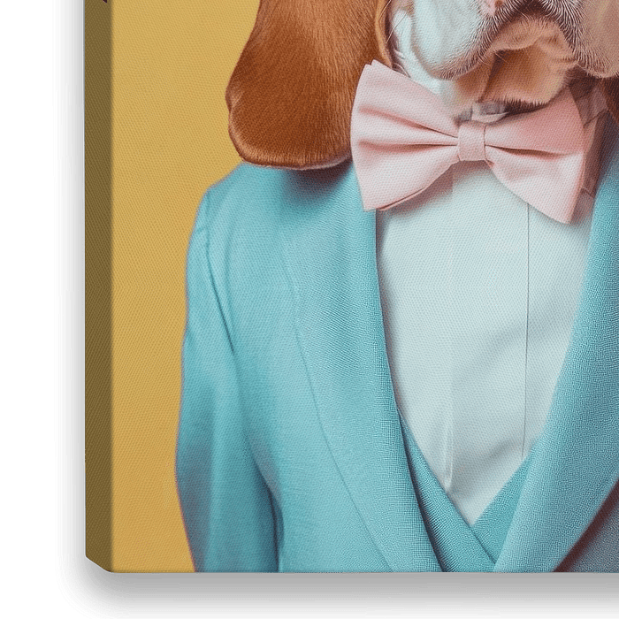 Mit seinen langen, herabhängenden Ohren und der sanften, melancholischen Mimik strahlt der Basset Hound ein charmantes Flair aus. Elegant im pastellfarbenen Anzug und mit einer klassischen Fliege geschmückt, vereint er Niedlichkeit und Stil. Dieser vierbeinige Adelige wirkt bereit für einen festlichen Anlass, während sein treuer Blick…