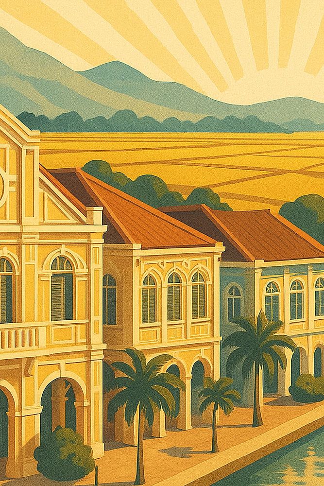 Battambang Vintage Poster - Französische Kolonialarchitektur & Flusskunst von Travel Shop