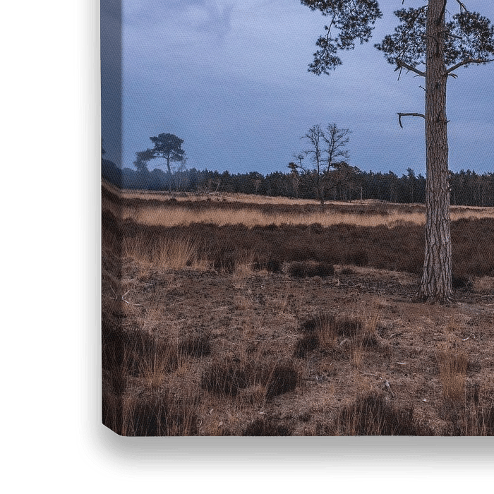 Bestelle dieses Landschafts-Wandbild Baum Abend Drunense Duinen von Zwoele Plaatjes als Reproduktion auf Leinwand, Alu-Dibond, als Poster, Fototapete oder Acrylglasbild.