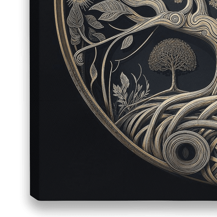 Hergestellt auf einer schwarzen Platte mit einer weichen, strukturierten Oberfläche. Beige und grünliche Töne,. Ein Baum als Symbol des Wachstums und des ständigen Wachsens, des Gebens und des Lebens