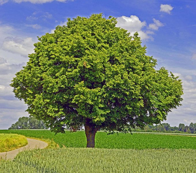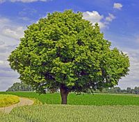 Baum steht im Kornfeld.Aufnahme entstand im Sommer in Hohenlohe. Sie zeigt ein typisches Sommerbild
