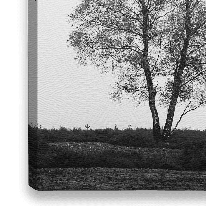 Ein einzelner Baum steht im Nebel und in herbstlichen Stimmungen in der niederländischen Landschaft.