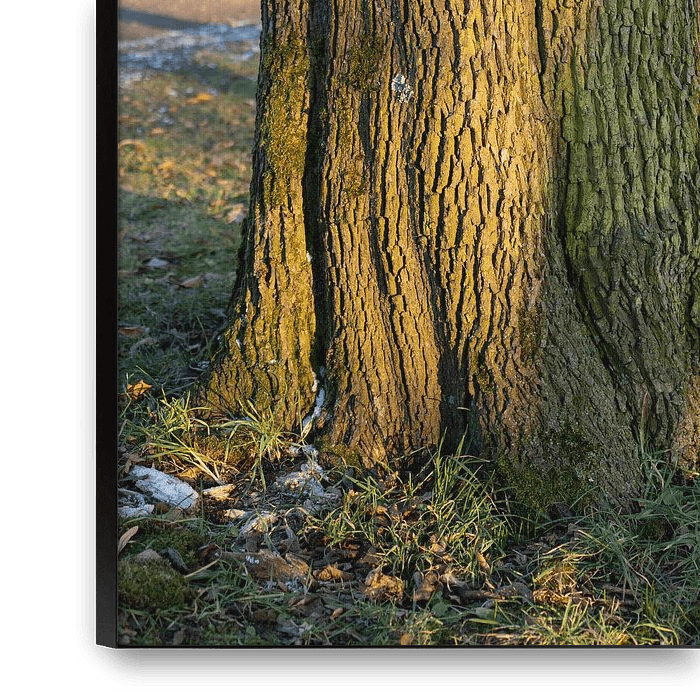Bestelle das Foto Baumstamm im Abendlicht 1 von Adriana Müller als Reproduktion auf Leinwand, Alu-Dibond, als Poster, Fototapete oder Acrylglasbild.