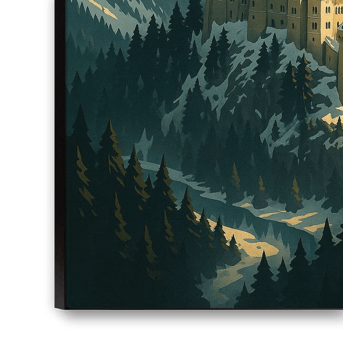 Feiern Sie die romantische Schönheit Bayerns mit diesem Bayern Art Deco Reiseposter. Dominiert vom weltberühmten Schloss Neuschwanstein, umgeben von tiefen Bergwäldern und schneebedeckten Gipfeln, fängt das Kunstwerk den märchenhaften Geist Süddeutschlands ein. Das im eleganten Art-Déco-Stil gestaltete Plakat kombiniert kühne Geometrie, stimmungsvolle Beleuchtung und zeitlosen Vintage-Charme. Ideal für jeden, der die bayerische Kultur, Geschichte und Landschaft liebt, strahlt dieses Werk Abenteuer, Majestät und Gelassenheit aus. Egal, ob Sie Bayern bereist haben, davon träumen, es zu besuchen, oder einfach nur historische Schlösser bewundern, dieses Wandbild schafft einen Brennpunkt der Inspiration. Es eignet sich perfekt für Ihr Zuhause, Ihr Büro oder Ihren Kreativbereich und lässt sich wunderbar mit anderen europäischen Reisepostern kombinieren. Holen Sie sich die Erhabenheit der bayerischen Landschaften und die Anziehungskraft von Schloss Neuschwanstein in Ihre Einrichtung mit diesem Bayern-Wandbild, einer Feier der Kultur, Architektur und natürlichen Pracht.