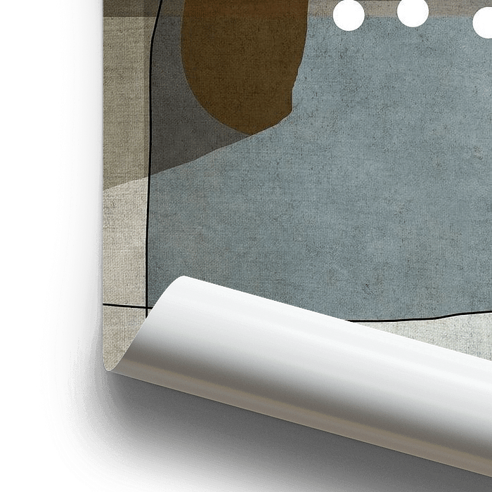 Neutrale Farbtöne und geometrische Formen mit zeichnerischen Elementen kennzeichnen dieses abstrakte Werk von Roberto Moro.
