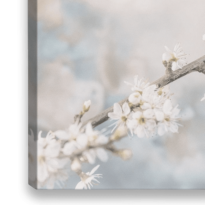 Die Frühlingsblüte kommt an die Bäume, die weichen Sommertöne und das warme Gefühl. Ein wenig länger und der Wind wird die Blüte wieder wegnehmen, aber für jetzt können wir sie genießen, ebenso wie der Spatz. Perfekt als Outdoor-Poster oder eine schöne Dekoration für den Flur.