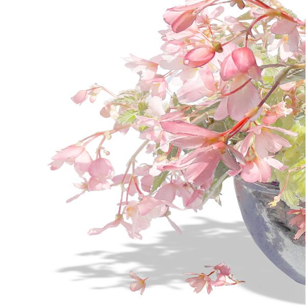 Diese wunderschöne Begonie macht zwar ziemlich viel Unordnung im Garten, ist aber so lieblich, anmutig und zart… Ich würde sie als zerbrechlich bezeichnen. Und eine leichte Brise weht das herabfallende Blütenblatt spielerisch und beschwingt davon…