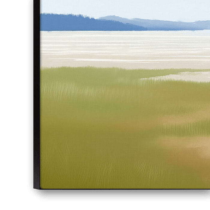 Malerei mit ruhigen beigen Farben: Harmonious Haven - ein Landschaftsgemälde zum Thema Ruhe und Schönheit der Einfachheit. Ruhige Beige- und Pastellfarben vermitteln Frieden und Ruhe.