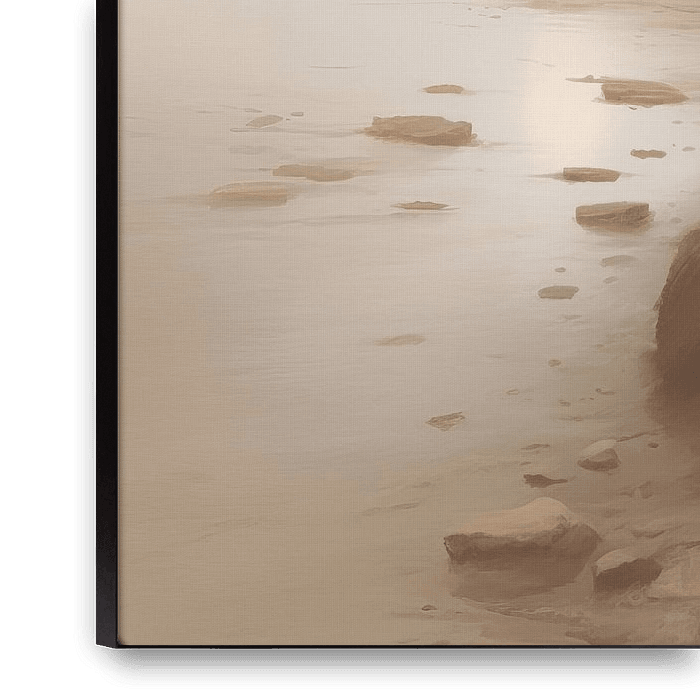 Malerei mit ruhigen beigen Farben: Tranquil Euphoria - ein Landschaftsgemälde zum Thema Ruhe und Schönheit der Einfachheit. Ruhige Beige- und Pastellfarben vermitteln Ruhe und Gelassenheit.