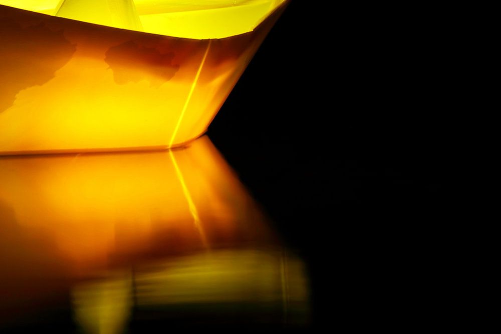 Ein beleuchtetes Boot auf einem der vielen Berliner Seen, anlässich eines Lichtfestes in Berlin.
