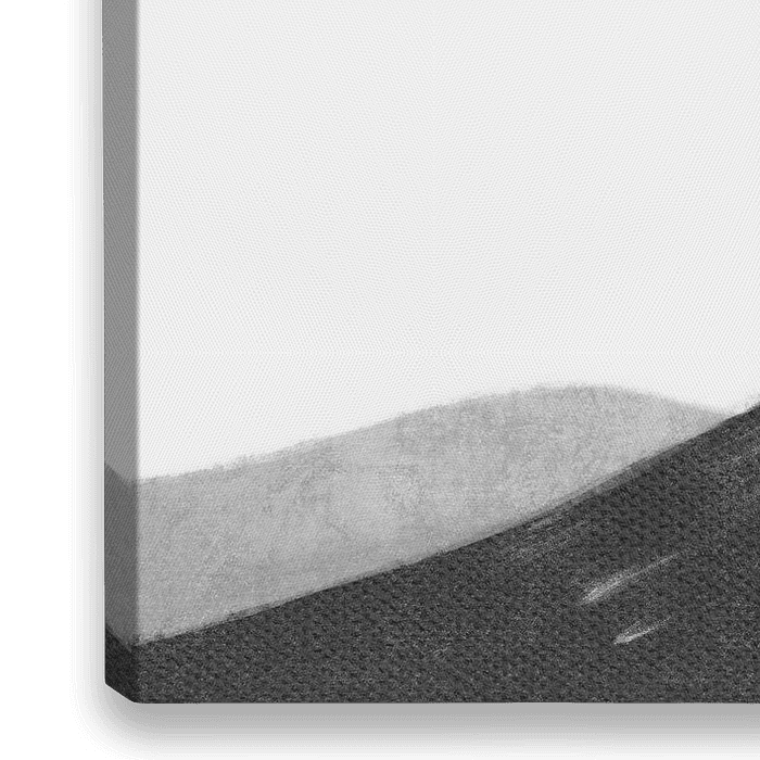 Dieses Kunstwerk ist in einem minimalistischen Stil gestaltet, der an den traditionellen Malstil Japans erinnert. Schwarze und graue Farbtöne wechseln sich auf…