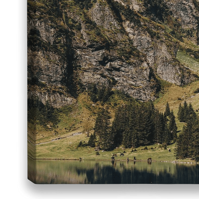 Dieses Foto habe ich in der Nähe des Hintersees in Österreich aufgenommen. Die Pferde grasen am Rande des Sees und im Hintergrund sind ein Wasserfall und Kiefern zu sehen. Ein schönes Tal zwischen den Bergen. Schöne österreichische Kunst, schön als Leinwand oder vielleicht gerahmt. Verdient dieses Werk einen Platz an Ihrer Wand?