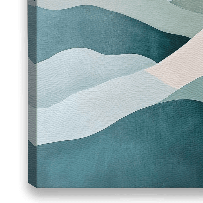 Sanfte, geschwungene Linien in beruhigenden Grüntönen und zarten Erdtönen schaffen eine harmonische Atmosphäre, die den Betrachter sofort in die Ferne entführt. Diese stilvolle Landschaft vermittelt ein Gefühl von Frieden und Weite, perfekt geeignet für ein Schlafzimmer oder einen Rückzugsort im Wohnzimmer, um Entspannung und Ruhe zu…