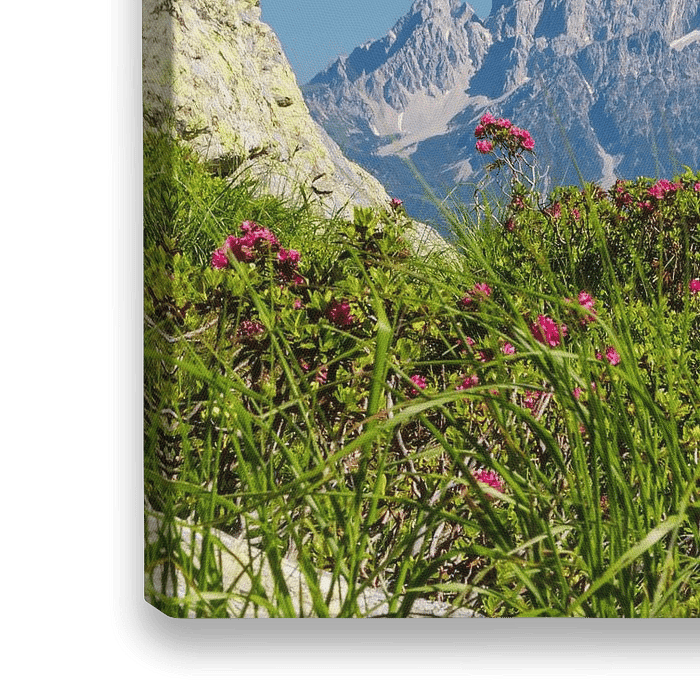 Almrausch in voller Blüte mit der Dachstein im Hintergrund