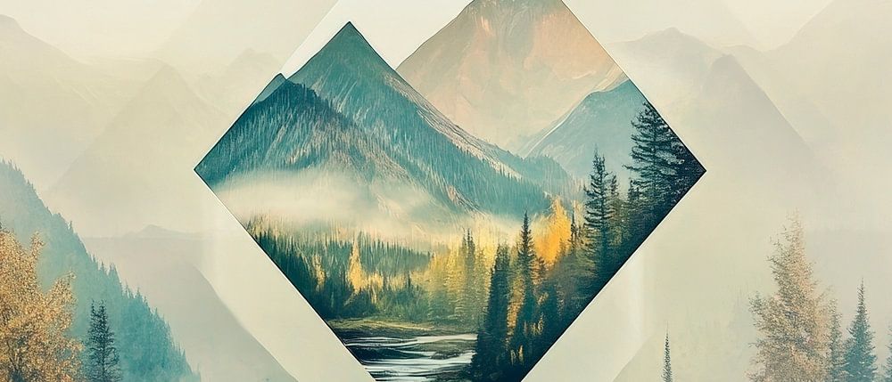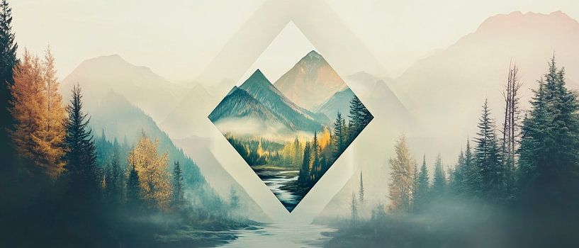 Verzaubernde Berge mit sanften Nebelschwaden umrahmen eine idyllische Landschaft – ein lebendiger Fluss schlängelt sich durch ein Kaleidoskop aus Herbstfarben. Die stilisierte Darstellung schafft eine harmonische Atmosphäre und passt hervorragend ins Wohnzimmer, wo sie beruhigende Träume und entspannte Gespräche fördert.