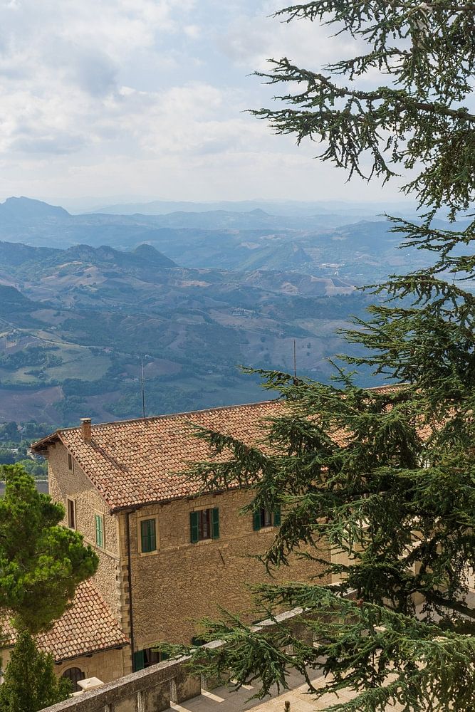 San Marino, ein Land in der Mitte Italiens mit einer Fläche von nur 61 km², bietet Ihnen diese wunderschöne Aussicht! Ich konnte die vielen Schichten und die endlose Tiefe der Berge in diesem Bild einfangen.