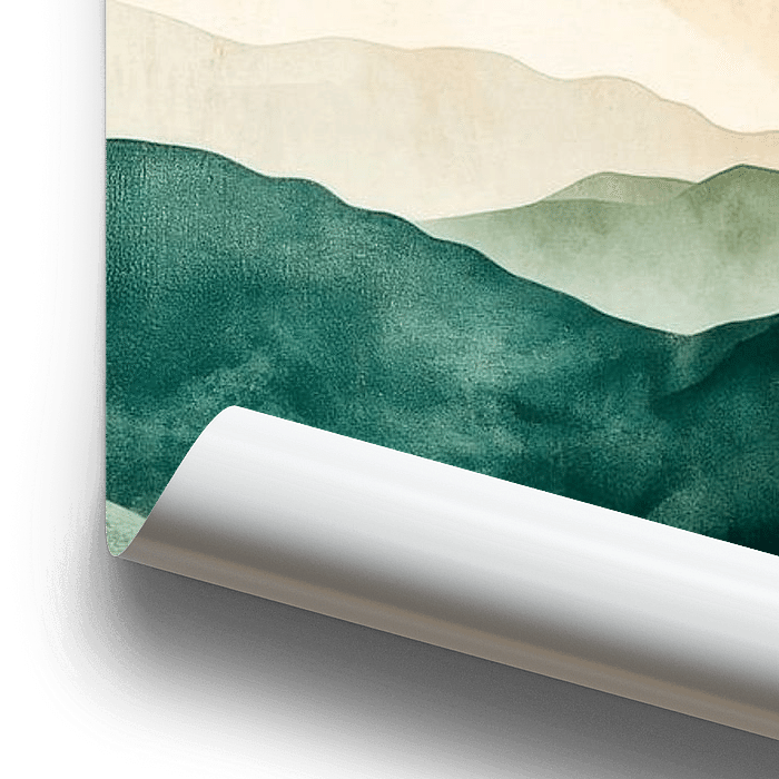 Sanfte Hügelwellen in beruhigenden Grüntönen und zarten Beigenuancen laden zum Träumen ein. Die harmonische Farbkomposition vermittelt Ruhe und Gelassenheit, perfekt geeignet für das Schlafzimmer oder ein kreatives Büro. Hier finden Gedanken Raum, während die Natur auf eine stilvolle Art und Weise ins Innere einzieht.