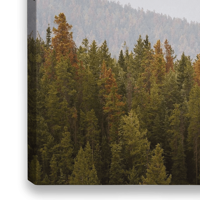 Ruhige Bergschichten in herbstlicher Farbe mit nebligem Zustand.
