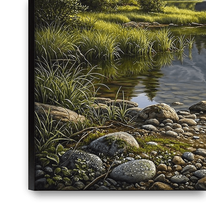 Ihre gewählte Kunst auf Leinwand, gespannt in einem Aluminiumrahmen. Schnell und einfach austauschbar für eine frische Ausstrahlung und ganz nach Ihren Wünschen.