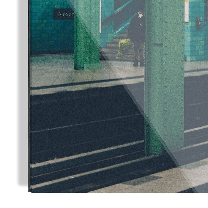 Bestelle dieses Art Deco-Wandbild Berlin Alexanderplatz U-Bahn, 2021 von A. David Holloway als Reproduktion auf Leinwand, Alu-Dibond, als Poster, Fototapete oder Acrylglasbild.