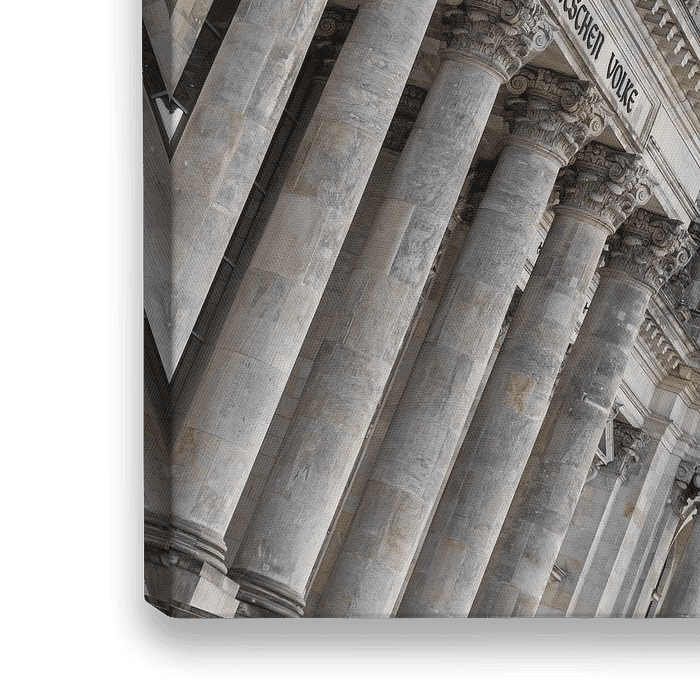 Das Kunstwerk „Berlin Bundestag Detail Fassade“ zeigt einen architektonisch bedeutenden Ausschnitt des Reichstagsgebäudes in Berlin. Im Fokus stehen die neoklassizistischen Säulen und das Giebeldreieck mit der Inschrift „DEM DEUTSCHEN VOLKE“. Darüber ist ein Relief mit mehreren Figuren zu sehen, das die historische und symbolische…