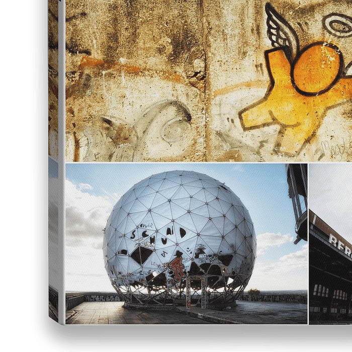 Bestelle dieses abstrakte Wandbild Berlin Collage von Maurice Moeliker als Reproduktion auf Leinwand, Alu-Dibond, als Poster, Fototapete oder Acrylglasbild.