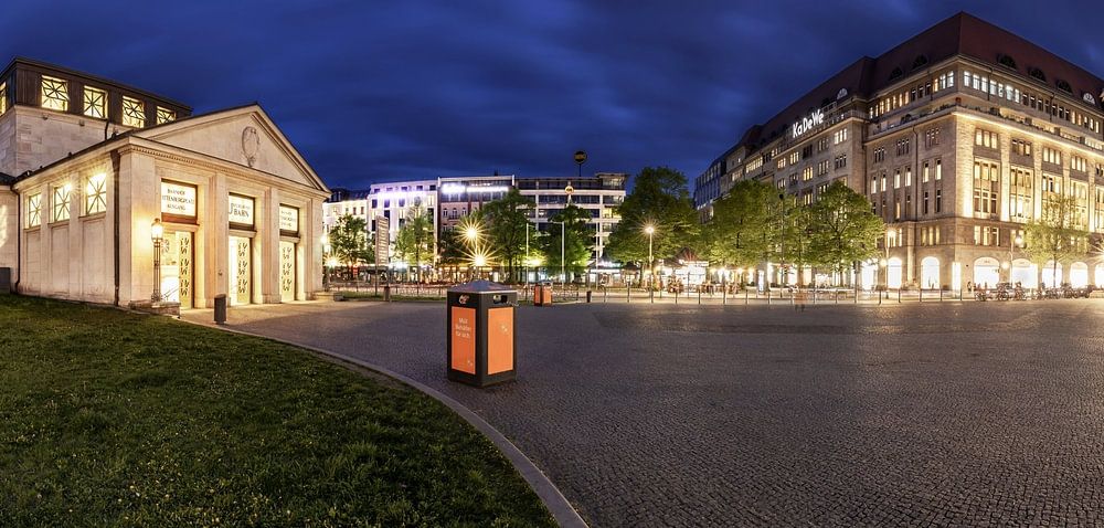 Berlin Wittenbergplatz - Panorama mit U-Bahnhof und Kaufhaus des Westens in der blauen Stunde