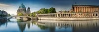 Panorama vom Berliner Dom an der Spree im Sonnenlicht. Berlin Zentrum mit der Nationalgalerie beim Museumsviertel und Bode Museum auf der Museumsinsel / Spreeinsel. Panoramabild / Stadtpanorama 310005ays