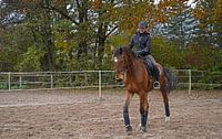 Beste Freunde - brauner Rheinländerwallach und seine Reiterin von Babetts Bildergalerie