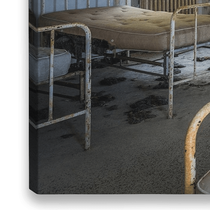 Bestelle das Foto Betten in einem verlassenen Krankenhaus von Inge van den Brande als Reproduktion auf Leinwand, Alu-Dibond, als Poster, Fototapete oder Acrylglasbild.