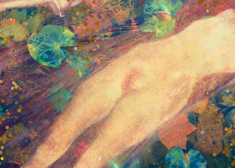Diese Bild ist eine Komposition aus dem Gemälde "Bewegte Wasser" von Gustav Klimt und einer privaten Fotografie eingefrorener Seerosenblätter, die entsprechend farblich verändert wurden. Die Kombination der beiden Bilder ergab sich thematisch wie von selbst. Sie setzt den Zyklus von Collagen fort in denen ich Werke von Klimt auf eigene Weise interpretiere.