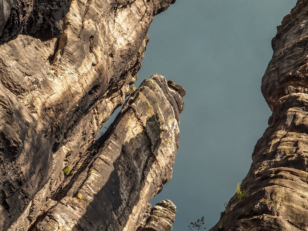Von wo die Herkulessäulen nun beeindruckender wirken, vom kleinen Felsplateau daneben oder direkt vom Fuß der Felstürme aus? Nun, ich finde diese Sicht hinauf schon ziemlich atemberaubend. Es sieht ein wenig aus, als würde der obere Teil der Felsformation auf dem unteren balancieren und jeden Moment hinunterstürzen können. Das Wissen, dass es nicht so ist, beruhigte mich aber. ;)