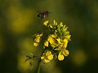 Biene im Anflug auf eine gelbe Rapsblüte im Herbst von Timon Schneider