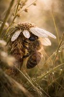Bestelle dieses Blumen-Wandbild Biene zwischen Tau und Licht von Christina Bauer Photos als Kunstdruck auf Leinwand, Alu-Dibond, als Poster, Fototapete oder Acrylglasbild.