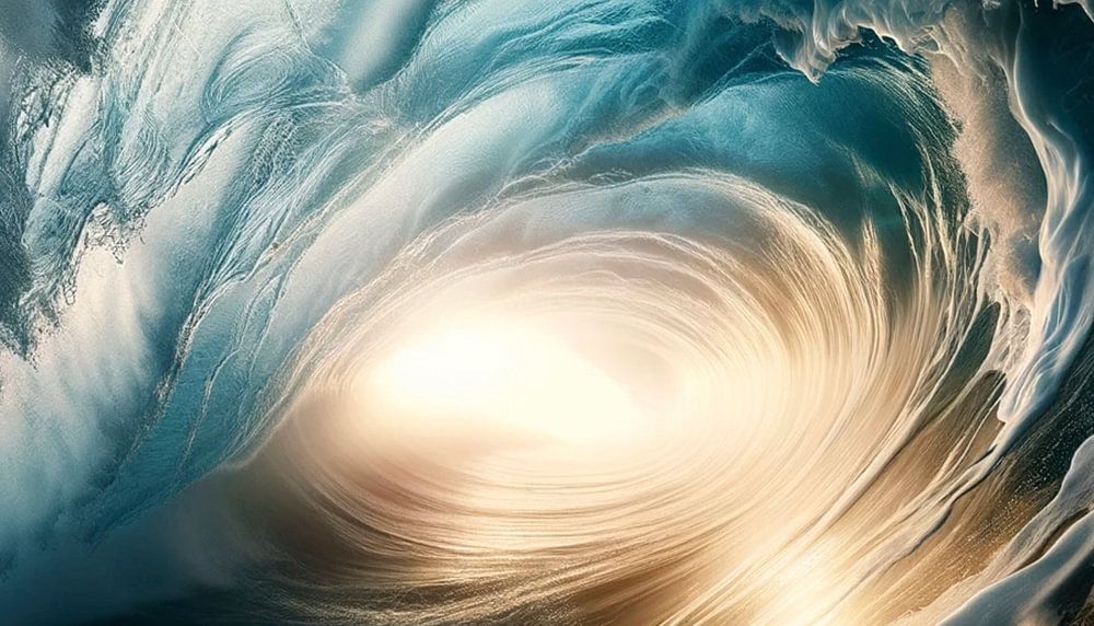 "Big Wave" ist eine beeindruckende Darstellung surrealer digitaler Kunst, die den Betrachter in die ungestüme Schönheit und Kraft einer gigantischen Welle eintauchen lässt. Diese moderne Kunstschöpfung fängt den Augenblick einer Welle ein, die kurz vor dem Brechen steht, mit einem leuchtenden Wirbel, der fast wie ein Portal in eine andere Dimension erscheint.