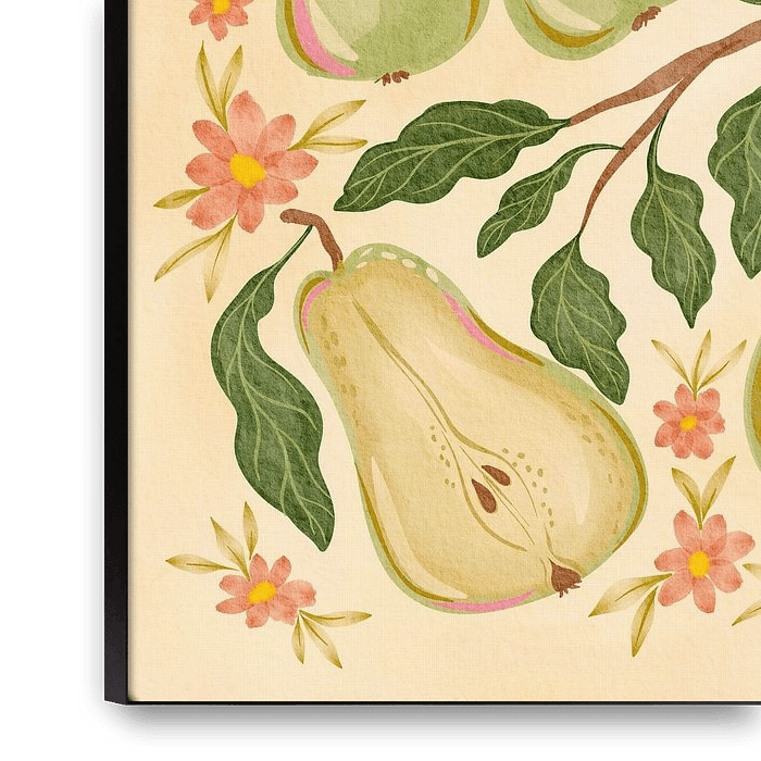 Bestelle dieses Blumen-Wandbild Birnen und Blumen von Nikita Jariwala als Reproduktion auf Leinwand, Alu-Dibond, als Poster, Fototapete oder Acrylglasbild.